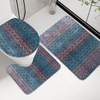 2-Piece Striped Anti-Slip Flocking Bathroom & Toilet Mat Set